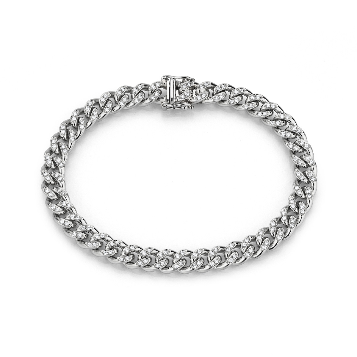 180 präzise gefasste Brillanten verleihen dem Armband ein kraftvolles Spiel aus Licht und Klarheit. Sanfte Bewegung trifft auf höchste Handwerkskunst.